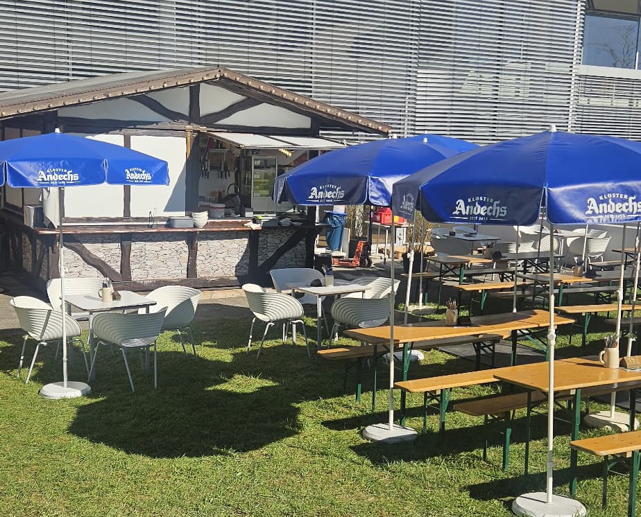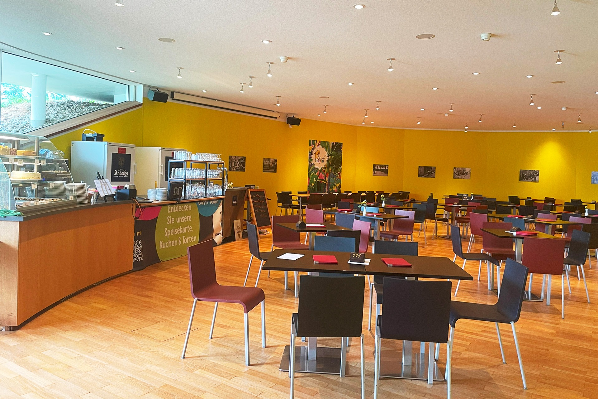 Im Zuge der Bauarbeiten zur Erweiterung des Museums ist das Café Buffi ab sofort in den Vortragssaal des Museums mit Terrasse umgezogen.